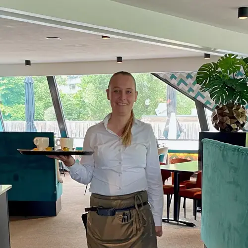 Tineke has been working at Van der Valk Hotel Drachten for 18 years and feels completely at home in the service. She started as a part-timer alongside her studies, briefly worked at the Front Office, but missed the dynamics of the restaurant. Now she is a familiar face at breakfast, lunch, and dinner. With her hospitable attitude and eye for personal service, she creates a warm atmosphere. Especially the regular guests, who have been coming here for years, make her work extra special.