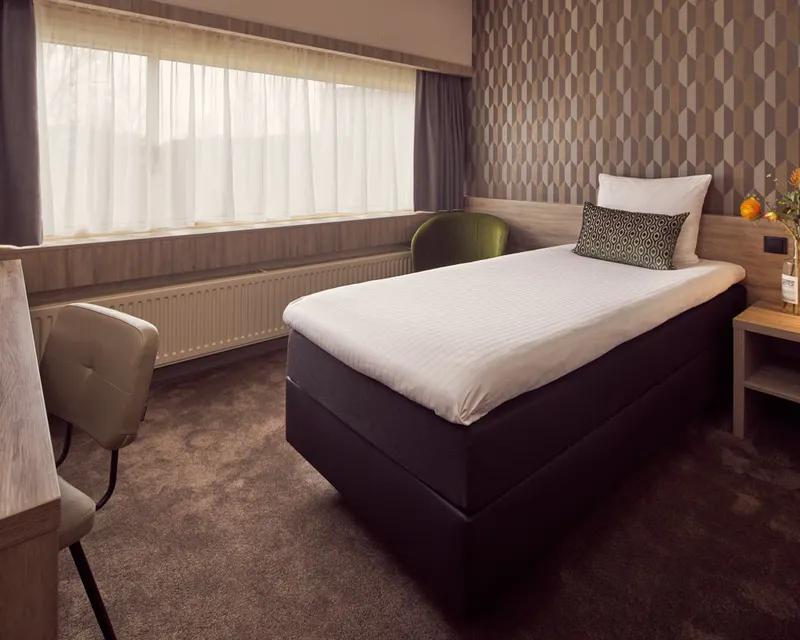 Our Standard Single Room (approx. 17m2) is ideal for a relaxing stay or an efficient working day. The room features a comfortable single bed, a modern walk-in shower and individually controlled air conditioning for a pleasant stay. Thanks to the desk and free Wi-Fi, the room is also great for business use.