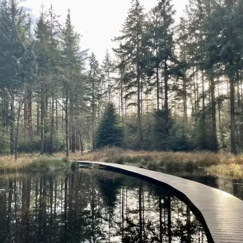 Walk into the forest and enjoy the diversity of tree species, various birds, and other animal species living there. The forest is densely wooded. Furthermore, you will come across everything; from coniferous trees to deciduous trees, from paved paths (convenient for strollers and wheelchairs) to large sand dunes.